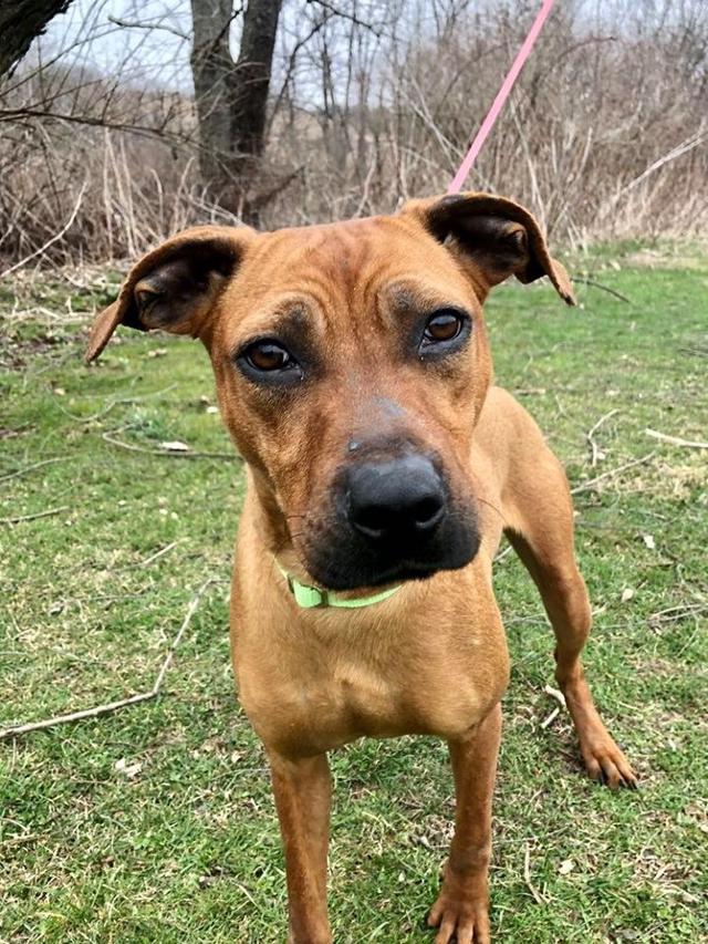 Lovey is a Rhodesian Ridgeback mix. She is very engergetic and playful. Lovey is a little shy at first meeting. She gets so excited when it is time for her walk that she runs and jumps. This makes it difficult to leash her, but once you get her on a leash, she walks well. Lovey loves to roll in the grass.