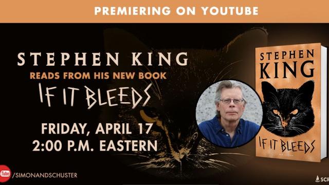 Simon & Schuster, a ViacomCBS sister company, announces the worldwide premiere of a live reading from If It Bleeds by Stephen King tomorrow, April 17th, at 2pm ET on YouTube. King will read a special selection from his new book ahead of its publication on April 21, 2020.