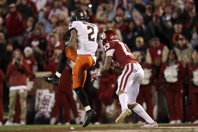 Wallace burst onto the scene as the Pokes’ next great pass-catcher, hauling in 79 passes for 1,408 yards with 11 touchdowns. His 1,408 receiving yards rank third among FBS players, and he leads all players with 59 catches of at least 10 yards and 25 of at least 20. Wallace did his best work in OSU’s biggest games, with 10 catches for 222 yards with two scores in a 38-35 upset of Texas and 10 receptions for 220 yards with two scores in a 48-47 loss to Oklahoma.{ESPN}