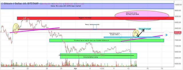 I remember when many people were calling me crazy for thinking we could go to the 8K's and maybe 9K's a week ago. Until yesterday even i thought i was crazy :). Because it was just taking so long for price to break the 7K resistance. One thing that is very different than the failed rally to 7500, many Alt coins have really exploded indicating that market sentiment has changed for at least the short term. It's just funny to see how sentiment can change so quickly after a big rally of 1200 points. It's actually just very typical in an emotional market like this one. Hope and fear plays a very big part in this game and i believe certain parties just know exactly how to abuse that feeling. You have to understand, i am telling all of this from a day traders point of view. And day traders know how mean this market has become with all those mean shake outs that are only increasing every week, to the up and downside!