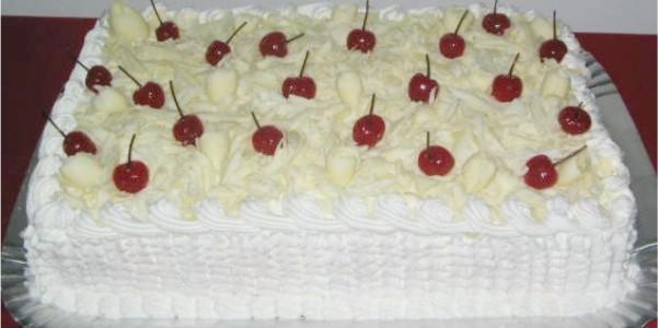 Cubra com chantilly, raspas de chocolate branco e cerejas.