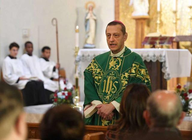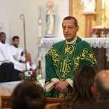 Bishop Frank Caggiano delivers a bilingual mass in Italian and English to honor Mother Cabrini, the first Italian-American canonized saint, at Sacred Heart Church in Stamford, Conn. on Sunday, November 17, 2019.