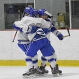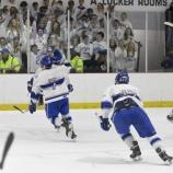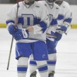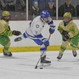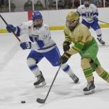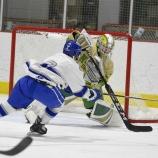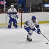 Darien has several uniform combinations but these might be the best. White jerseys with a royal blue stripe going all the way around the torso, with a silver “D” overlay outlined in black on the front. On the sleeves there are silver numbers with a blue stripe, outlined in silver lower on the arm. The helmets are blue with “Wave” in white script. The pants are blue with the Blue Wave logo on the front left thigh. Special points for the goalie who has the Blue Wave with a D on top split between his two leg pads. Very cool touch.