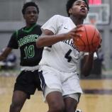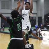Hillhouse comes correct in its home whites. Nothing fancy, just a solid, classic look. The jerseys are white with “HILLHOUSE” across the chest in navy. The numbers are navy, outlined in silver. On the sides are a navy stripe under the arms with a smaller, silver, stripe underneath. The shorts are white with a thick navy stripe down the sides.