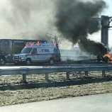 Vehicle fires closed lanes of Route 8 on Thursday morning.