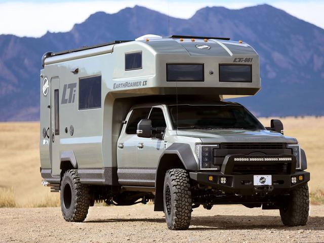 Built to tackle any terrain without sacrificing high-end amenities, the all-new EarthRoamer features a carbon fiber shell. | Courtesy of EarthRoamer