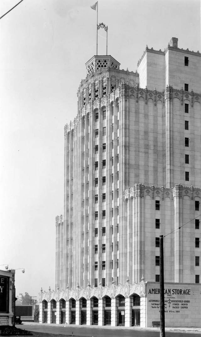 On Beverly Boulevard, he drafted an elaborate Italianate- and Spanish-style structure that looked more like a stylish fortress than a place to store old mattresses. Built with reinforced concrete by the Luther T. Mayo construction firm, it included much more than storage lockers. The LA Times reported that it boasted a roof garden, radio broadcast station, a rug cleaning establishment, and huge bank vaults for jewelry and bonds.