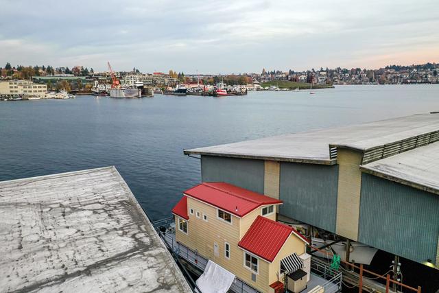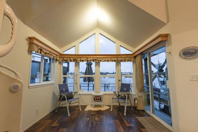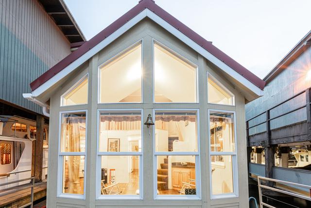 Docked off Westlake Avenue near the crux of Queen Anne and Fremont, this home on the water takes an airy, lodge-like loft design and shrinks it down into a houseboat-sized package. But while 583 square feet is on the small side for a house, it’s big enough on a houseboat curve to keep from compromising too much for space—and a generous wraparound deck adds plenty of extra wiggle room.