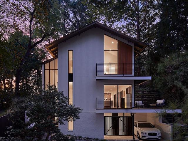 SPECS: 4 beds, 3.5 baths, 3,306 square feet, 0.19 acres — Designed by modernist architecture firm Cross & Adreon, this 1969 house is currently owned by former Washington Redskins cornerback turned real-estate-company founder Darryl Pounds, who enlisted local firm MCDStudio for a thorough renovation. Completed in 2019, the revamp embraces the house’s mid-century heritage (the roofline and striking vertical windows on the façade, for example, have remained intact) while updating the interior layout and finishes throughout. Walls were knocked down to create an open-plan kitchen, dining area, and living room, and a lower-level office was converted into a fourth bedroom with its own bathroom. New finishes include flush base molding, Silestone quartz countertops in the kitchen, white-oak stairs and bedroom flooring, and Porcelanosa tiles in the master bathroom.