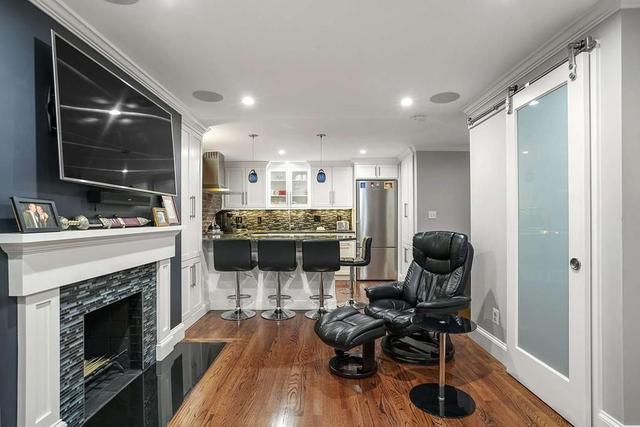 The 55-inch TV comes with this 701-square-foot duplex, which also has two bedrooms and one and a half bathrooms. The condo is asking $769,000, with a HOA of $150.