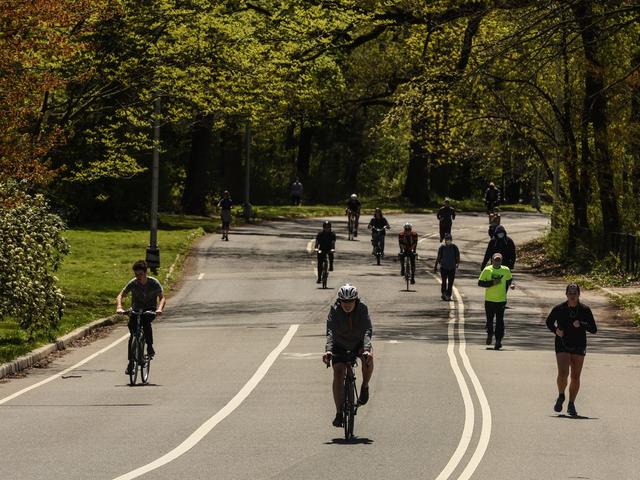 Cyclists and joggers have begun enjoying the warmer weather in parks across New York City. | Stephanie Keith/Getty Images