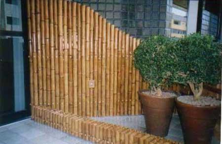 Cerca de bambu em jardim – mais comum em quem possui uma grande área verde no quintal. Uma mini cerca ou mais longa para separar a sua hora de área de lazer ou delimitar área, uma sugestão para quem busca privacidade para quem usa o spa da casa em uma área externa, por exemplo. Há como usar a ideia para fechar uma varanda de quarto de casal e delimitar o espaço, por exemplo.