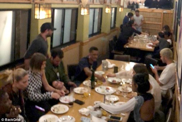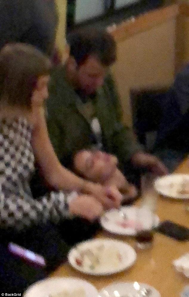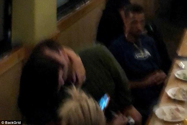 The model was pictured cosying up to the man as they whispered into one another's ears over the noise of the room.
