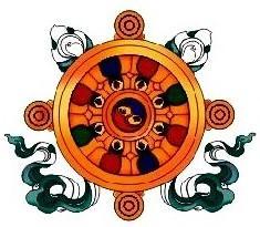 The eight-spoke wheel Dharmachakra (chaos kyi in Tibetan), also known as the Wheel of Law is among the oldest and best known of Buddhist symbols, going back to the time of the great Buddhist king Asoka in India.