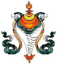 The conch proclaims the widespread influence and sovereignty of Buddha’s teachings. It is emblematic of great spiritual power and its resonance is thought to cast out evil spirits.