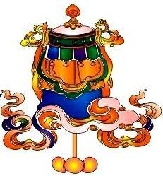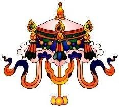 The Tibetan parasol is inspired both by Indian and Chinese designs used by royalty. Its wooden spoke is topped by a dome-shaped cover, with a silky “skirt” hanging from the rim. The dome represents wisdom and the skirt, compassion, both of these being essential Buddhist values.