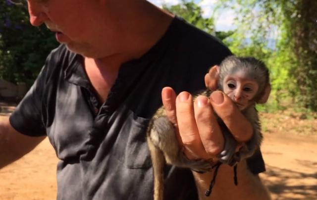 Jerry was just a tiny baby when the accident took place. She was one very lucky monkey, though, because the fantastic people at the Vervet Monkey Foundation found her in the nick of time. Dave, a coordinator at the VMF, raced her to the sanctuary to attempt to get her some help.