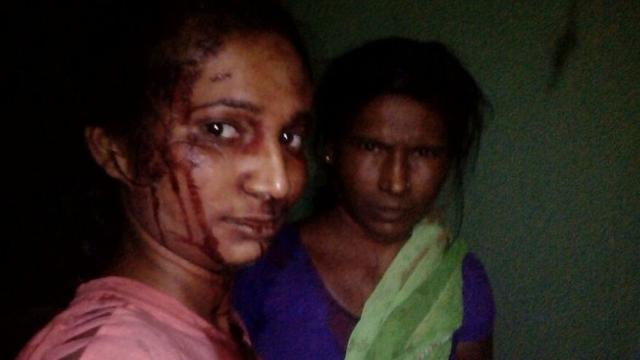 Ms Meshram took a selfie soon after the attack, which happened last week but has only just come to light. Her face is a mask of blood.