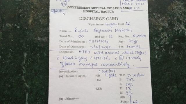 "I thought my daughter was going to die," her mother Jijabhai told BBC Hindi's Sanjay Tiwari, adding that she had been horrified to see her blood-stained daughter trying to fend off the tiger with a stick.