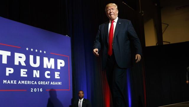 Republican presidential candidate Donald Trump arrives to speak at a campaign rally at the South Florida Fairgrounds and Convention Center, Thursday, Oct. 13, 2016, in West Palm Beach, Fla.