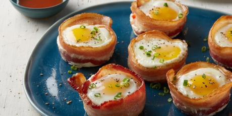 2. Bake until the fat starts to render from the bacon (it will bubble in the bottom of each cup) and the bacon begins to crisp and turn light brown on the top edges, 10 to 12 minutes.
