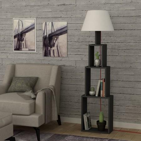 Lámpara de pie de la Torre. El lino y la antracita, el material y el color de esta lámpara de pie es un modelo que permite jugar con él en diferentes ambientes. Su diseño engloba dos funciones distintas consideradas muy eficaces como, estantería con iluminación incorporada. Si el color antracita no es el que más convence a tu decoración, la firma Homitis da segundas opciones con el co ligero color moka o el moka normal, además de las variadas combinaciones de pantallas en color amarillo, azul, verde.