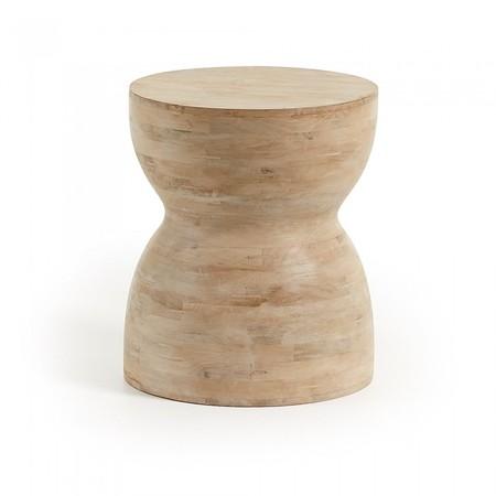 La habréis visto en ambientes especiales, en los hoteles de vacaciones o en las casas de algunos famosos. Aquí la tenemos... La mesa auxiliar maciza realizada en madera de mango llamada Mazy. Un mueble ligero para mover de un lado a otro de la estancia. Si nos ponemos a darle otro uso, en un momento dado, vale como taburete. Os dejo sus medidas y se adquiere en Kave Home y particularmente me apasiona.