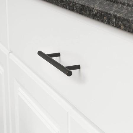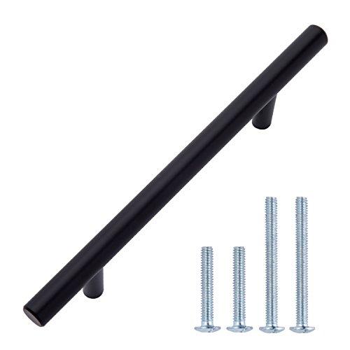 AmazonBasics - Tirador de armario en forma de barra, tipo europeo (9,52 mm de diámetro), 15,57 cm de longitud (centro del orificio de 9,52 cm), Negro liso, Paquete de 10