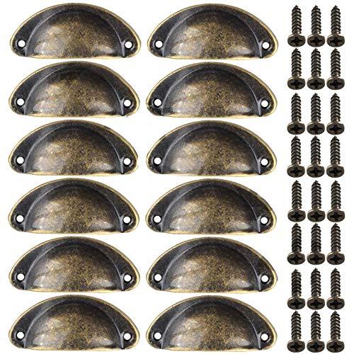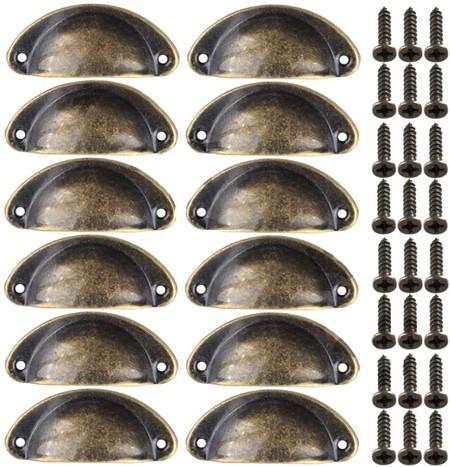 Xinlie Pomos Vintage Puerta Retro Hierro Muebles Cocina Armario Cajón Tire Tiradores y Pomos Tiradores de Metal Vintage Bronce con Forma de Carcasa con Tornillos para Puertas de Armario(12PCS) (A)