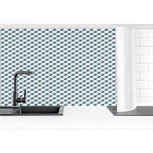 Bilderwelten Revestimiento Pared Cocina - Geometric Tiles Mix Cube Blue Gray 70 x 50 cm Smart