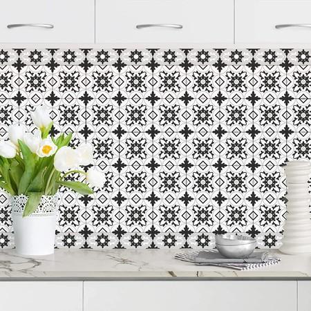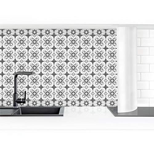 Bilderwelten Revestimiento Pared Cocina - Geometric Tiles Mix Flower Gray 60 x 100 cm Smart