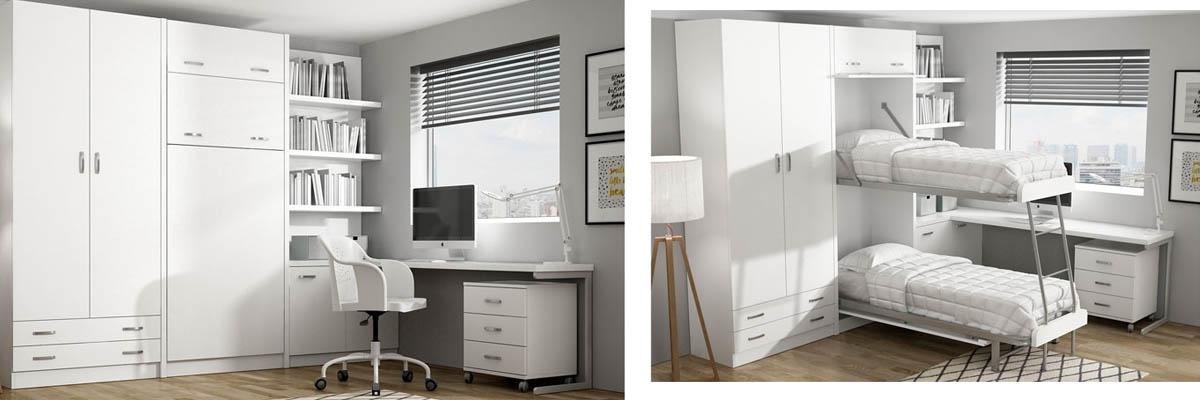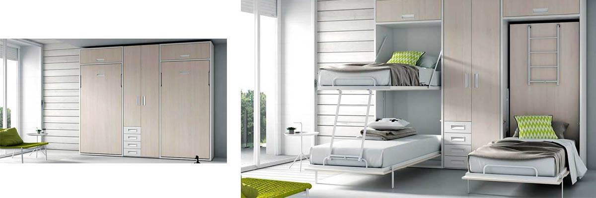Las literas abatibles verticales se integran hoy en día en muebles multifuncionales que nos permiten cubrir todas las necesidades del espacio en el que son instaladas. Probablemente ese es el motivo de que tengan tanto éxito tanto en espacios multifuncionales que sirven también como habitación de invitados como en dormitorios juveniles.