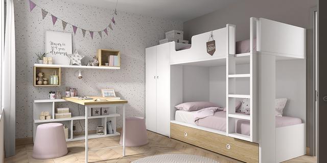 Una de las ventajas más claras que les vemos a las literas para niños es que son piezas que nos ayudan a ahorrar mucho espacio. Podremos tener dos camas en el espacio que ocuparía una y así utilizar la habitación con más funciones. Se puede añadir un escritorio o dejar mucho sitio para los juegos. Por otro lado, las literas también pueden servir para esos niños que tienen un cuarto para ellos solos pero desean tener un espacio de juegos especial. En la parte superior iría la cama y en la inferior la zona de juegos o incluso la de estudio cuando crezcan. Estas literas actuales nos dan también mucho espacio de almacenaje extra, por lo que son muebles que pueden ayudarnos con la tarea de tener su cuarto bien ordenado.
