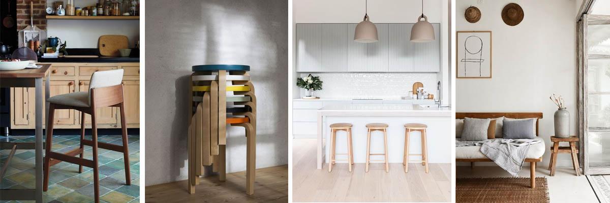 Los taburetes de madera de estilo rústico con una estética basta han formado parte de nuestros hogares durante décadas y siguen haciéndolo. A estos se unen hoy diseños mas pulidos en maderas claras que responden a la gran demanda de piezas de estilo escandinavo, además de otros mas exclusivos y con formas mas originales que se convierten por si solos en un objeto decorativo.