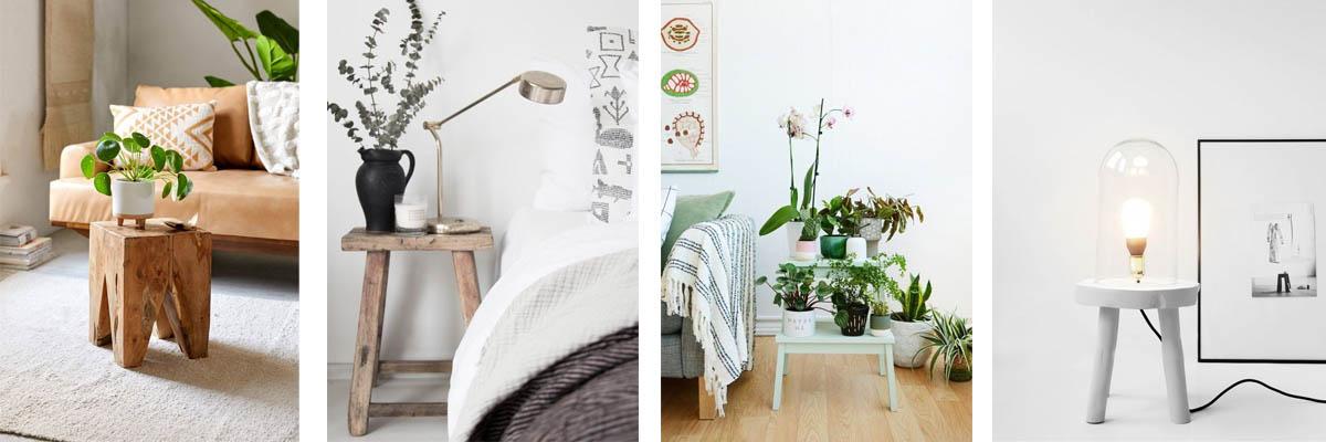 - ¿Tienes una planta preciosa o una damajuana a las que quieras dar un lugar privilegiado? Elévalas sobre un taburete y llena de encanto cualquier rincón de tu casa.