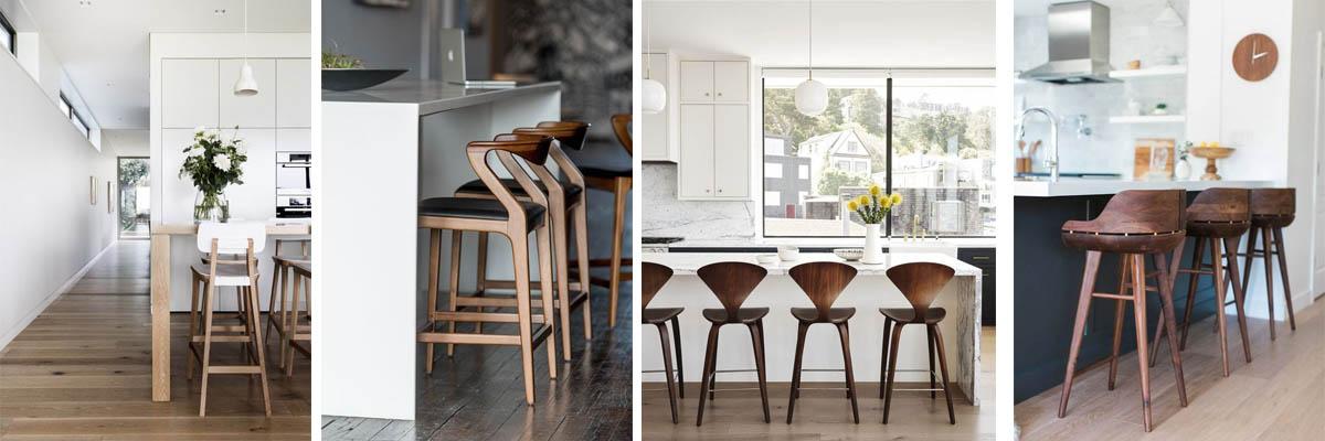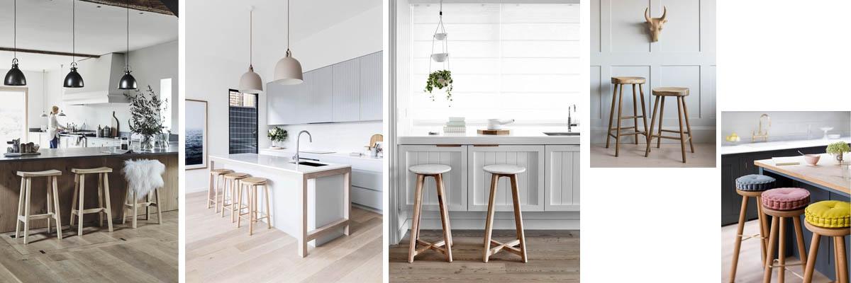 Las islas de cocina se convierten en centro neurálgico de numerosos hogares. Sirven como barra de desayuno improvisada pero también se convierten en ese lugar en el que reunir a amigos y familias y socializar. Y los taburetes nos ayudan a hacer estas islas mucho mas funcionales, convirtiéndose aquellos fabricados en madera en los mas habituales en estos espacios.