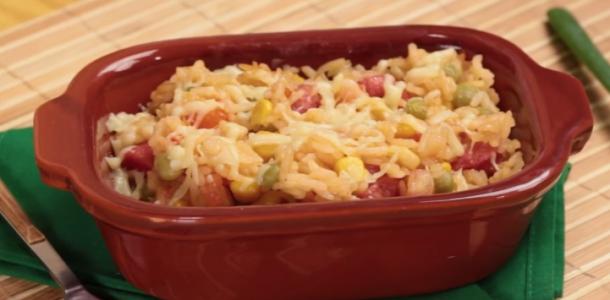 Após, adicone a ervilha, o milho, o tomate, mexa bem