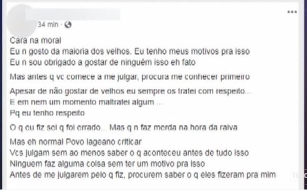 Na postagem, o cobrador colocou uma imagem de idosos num coletivo e escreveu: "Só da carijo. Odeio veio em ônibus. Por que não morrem tudo de uma vez?".