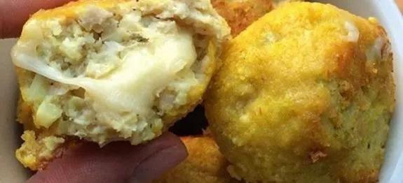 Com a massa faça as bolinhas e coloque o queijo dentro.
