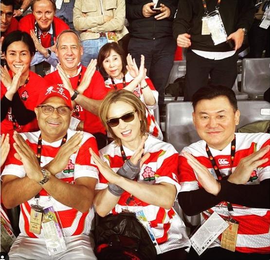 YOSHIKIは、自身のInstagramアカウントにて「X!!! with my friends at #Rugby #WorldCup. Both #SouthAfrica and #Japan are amazing!」とコメントとハッシュタグを織り交ぜながら綴り、10月20日に行われたラグビーのワールドカップの日本対南アフリカ戦に言及。