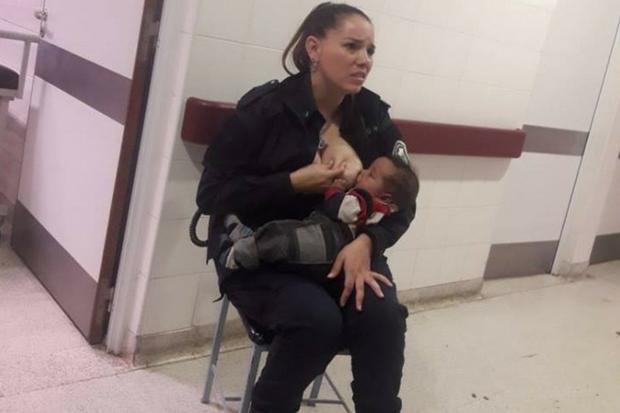 A imagem de uma policial amamentando um bebê viralizou na Argentina nesta semana. Não se trata, porém, de uma mãe alimentando o seu filho em uma pausa do horário de trabalho. A imagem guarda uma grande história.