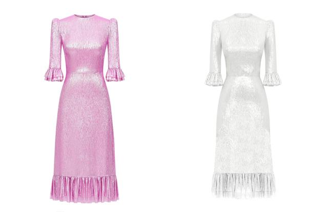 Se trata del brillante vestido de noche modelo “Falconetti”, de la firma The Vampire’s Wife de la actriz, modelo y diseñadora Susie Bick, esposa del músico Nick Cave (que parece un vampiro). Este vestido de chifón de seda iridiscente de estilo victoriano con volantes, es la pieza estrella de la marca y también de Jennifer Aniston, Yalitza Aparicio y Kate Middleton.