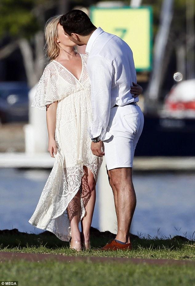 The blonde looked completely besotted with her new man, as she tenderly wrapped an arm around his waist and planted a kiss on him for cameras.