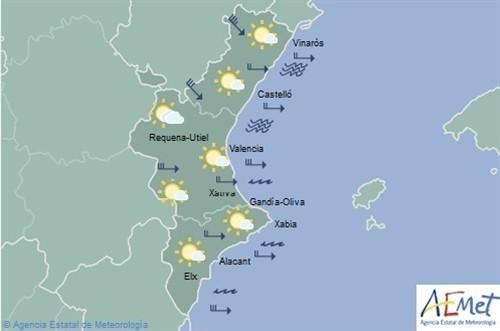 Las temperaturas no superarán los 20 grados en ningún punto de la Comunitat: las máximas se mantendrán entre los 15 y los 19 en la costa, y entre los 8 y los 14 en el interior. La más alta serán los 19 de Alicante, mientras que en Morella no subirá el termómetro de los 8 grados. En València se llegará a los 17 grados y en Castelló, a los 16.
