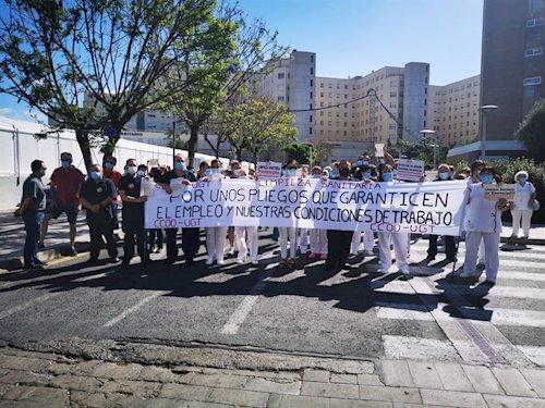 Trabajadores de todos los hospitales de la Comunitat Valenciana se han concentrado este jueves, convocados por CCOO y UGT, para exigir que la Conselleria de Sanidad incluya en los pliegos del contrato de limpieza de los centros sanitarios la exigencia a las empresas de una plantilla mínima para evitar despidos y garantizar un buen servicio y han anunciado que mantendrán estas movilizaciones hasta que se incluya este requisito que ahora, con la crisis por la Covid-19, es "aún más necesario".