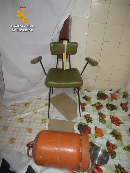 En ese registro se encontró, en el interior de la vivienda, los útiles que empleó para retener y amenazar de muerte a su víctima, en concreto, el cuchillo, las bridas y la silla.