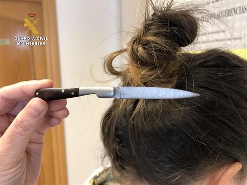Una de las navajas intervenidas se localizó oculta en el moño de una joven
