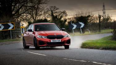 The xDrive set-up, with its electronically controlled multi-plate clutch, works well. It has the ability to make the M340i feel secure one moment, but then with the DSC system relaxed or switched off entirely, it will permit plenty of oversteer, aided by the M Sport rear diff. It needs care though, because the ferocity of the engine’s delivery and the inevitable character of a force-fed throttle response mean you have to be right on your game if it does lose traction at the rear axle, and the way drive to the front tyres snaps the car back in line means that lock must then be removed smartish.
