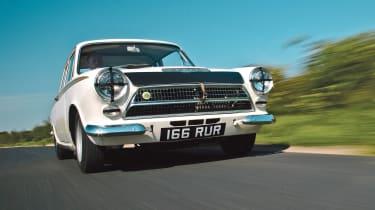 Famously photographed in neat, finely balanced high-speed four-wheel drifts – with the likes of Jim Clark, Graham Hill, Jackie Stewart, Jack Sears and Roger Clark behind the wheel – the Lotus Cortina established Colin Chapman and Lotus as the ‘go to’ guys for competition tuning of everyday cars. With its (Lotus engineer) Harry Mundy-designed and Grand Prix-proven twin-cam cylinder-head under the bonnet, plus lightweight panels and heavily revised suspension, the ‘Consul Cortina Developed by Lotus’ helped Jim Clark win the 1964 BRSCC Saloon Car Championship, then bagged the European Saloon Car Championship for Sir John Whitmore the year after. Victory on the 1966 RAC Rally showed it was robust as well as quick.