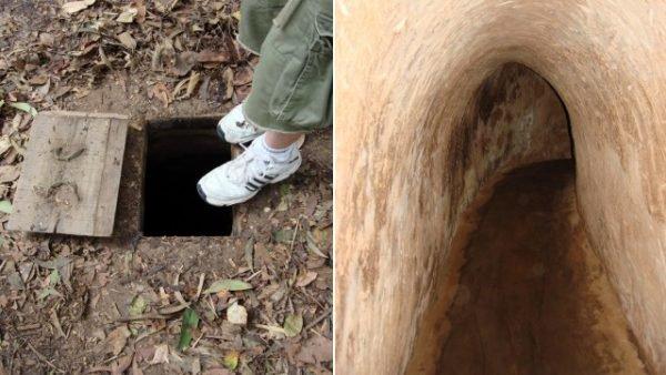 Esse túnel muito discreto fica no Vietnã. A passagem era muito utilizada durante os combates. Tinha rotas de abastecimento, hospitais, comida e reserva para armas no seu interior. Era um alojamento para os guerrilheiros e muito tempo depois foi encontrado por acaso.